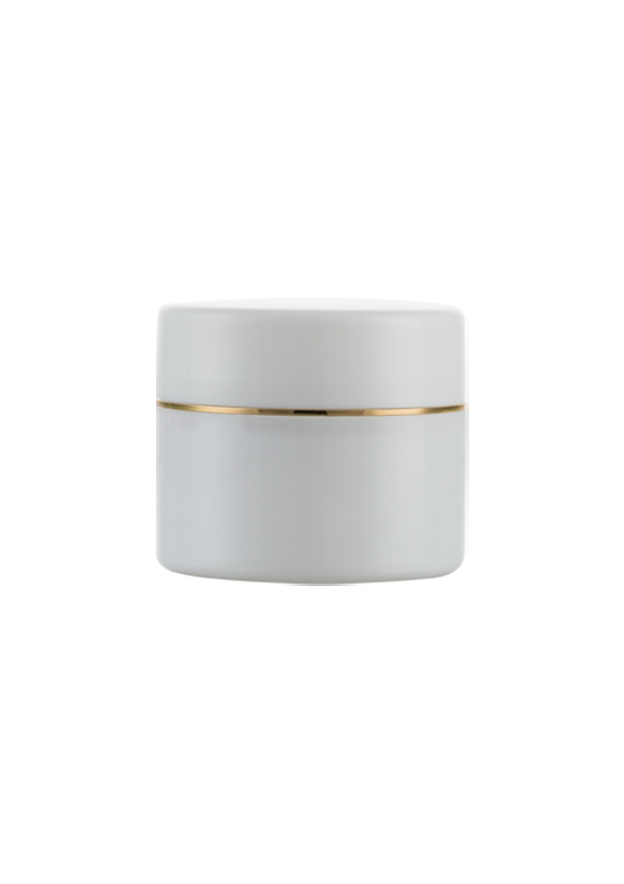 TARRO 1 OZ PS BLANCO FILO ORO CON TAPA Y LINNER